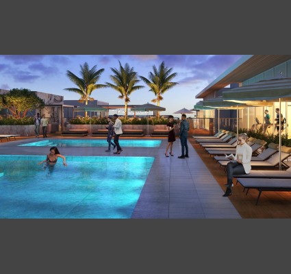 Project amenities are anticipated to include a rooftop resort pool with cabanas and outdoor fireplaces, multiple work-from-home spaces, a pet run/wash, and a fitness center.