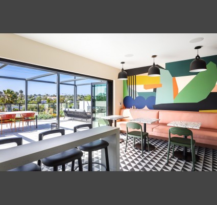 The Venice Collection are two unique, boutique communities with abundant amenities and designer interiors. Located in Mar Vista, these projects will bring a new exciting level of design to both the emerging neighborhood of Mar Vista and the adjacent Venice Beach community. The motifis are artistic, playful, coastal, vibrant and inclusive. The smaller property will open first with a coworking / uber lounge, courtyard, massive Skydeck and clubhouse. The Skydeck is separated into areas designated for fun and games, BBQ & alfresco dining, and outdoor movies. The larger property will be more sophisticated and will include a leasing / uber lounge, 24 hour fitness center, co-working hub, courtyard, an oversized roof deck with dipping pool (one of the only rooftop pools on a wood frame building in all of Los Angeles) and an outdoor entertaining zone. They will both feature local art & design from the extremely creative immediate neighborhood.